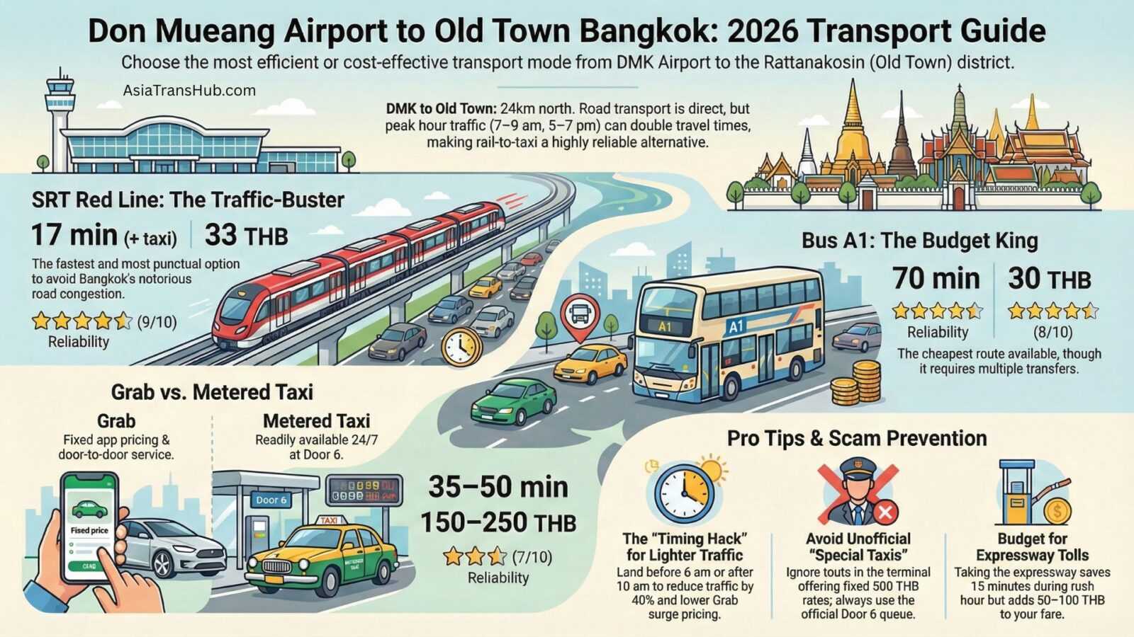 5 Ways to Get from Don Mueang Airport to Old Town Bangkok (2026 Guide)