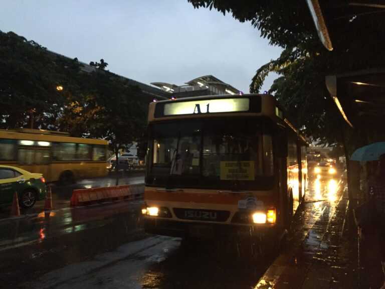 Cheapest: City bus A1 to Mo Chit plus BTS. Under ฿100 if you buy a Rabbit card. You’ll stand on the bus during morning rush. Escalators at Siam station turn into a luggage obstacle course. Worth it? Only if you’re counting every baht.