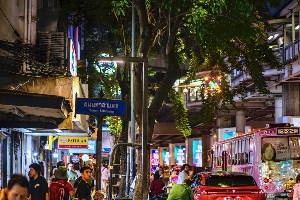 Patpong night market two blocks south is where the scams live. Fake Rolex watches, ping-pong show touts grabbing your arm, bars with no prices until the bill arrives. Just walk through for the chaos, don’t buy anything.